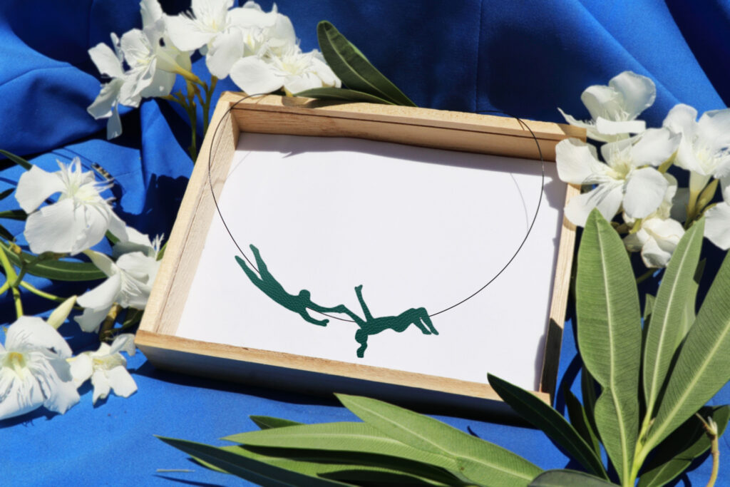 Χειροποίητο κολιέ ακροβάτες. Τα στοιχεία είναι από οικολογική δερματίνη με ατσάλινη κοσμηματική ντίζα και ατσάλινη αλυσίδα με ρυθμιζόμενο μάκρος.