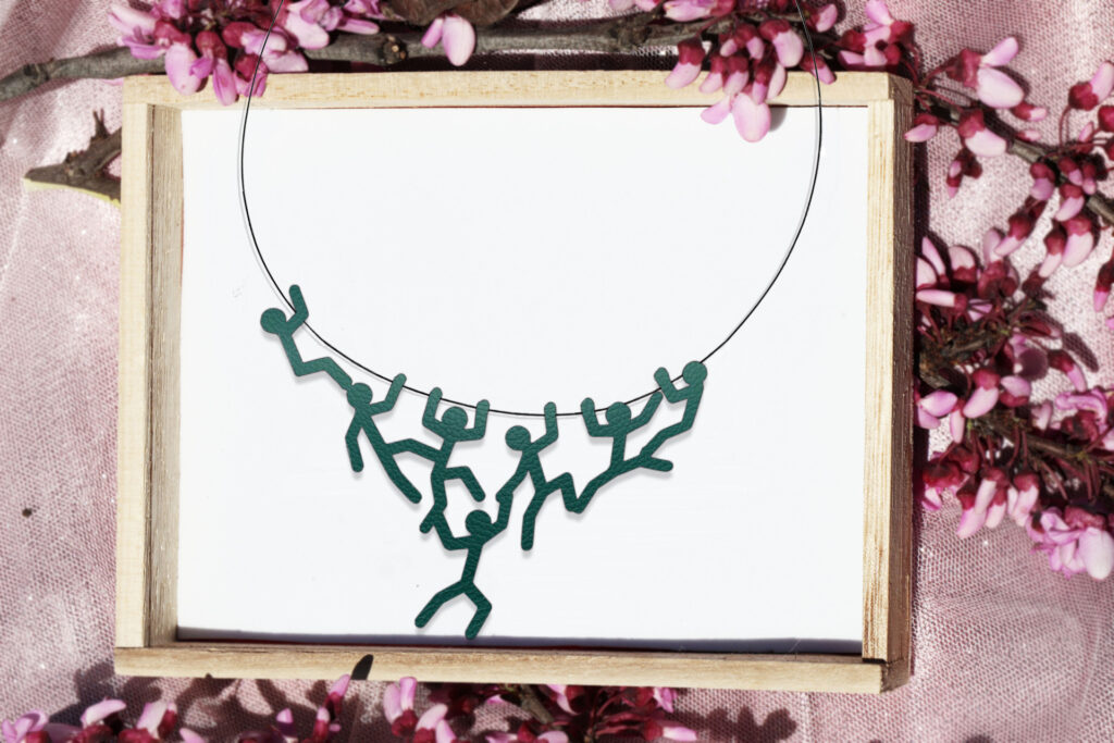 Χειροποίητο κολιέ ενωμένοι άνθρωποι. Το στοιχείο είναι από δερματίνη με ατσάλινη κοσμηματική ντίζα και ατσάλινη αλυσίδα με ρυθμιζόμενο μάκρος.